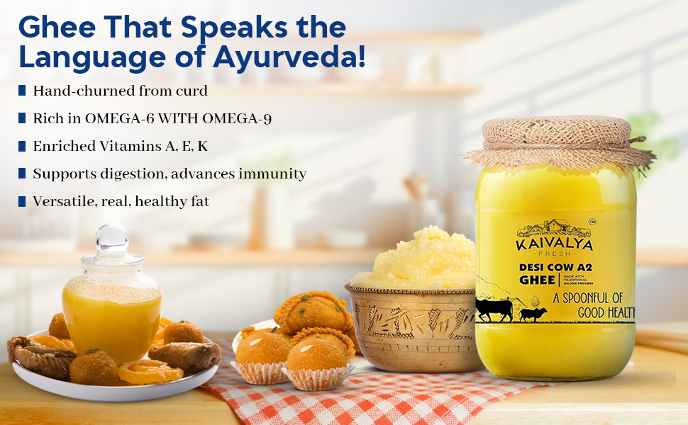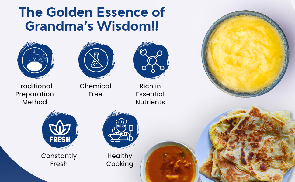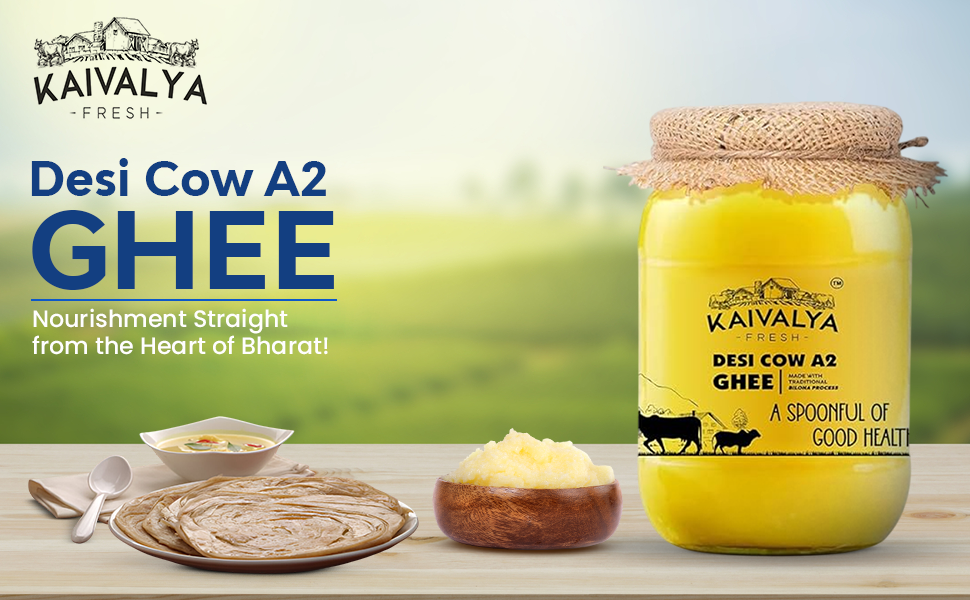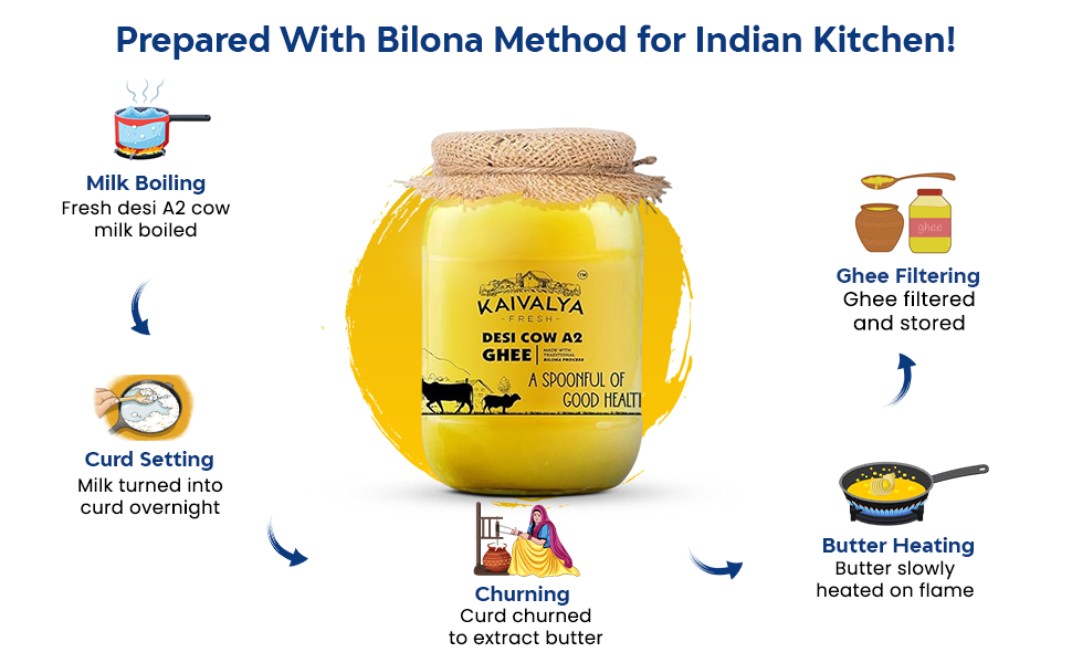 Our Desi Cow A2 Ghee is made using fresh Desi cow milk. The Cows are free-grazed. The milk from them is brought to a boil and naturally cooled down to room temperature and inoculated with a natural starter culture and left overnight to make curd. The curd is churned using the traditional 'Bilona method.